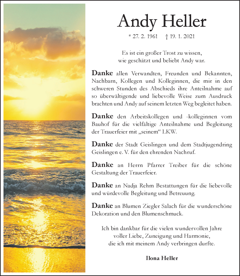 Hier finden Sie alle Traueranzeigen aus der Zeitung, die bisher für Andy Heller erschienen sind. Weitere Traueranzeigen, die in der Zeitung erscheinen, werden hier ebenfalls aufgelistet