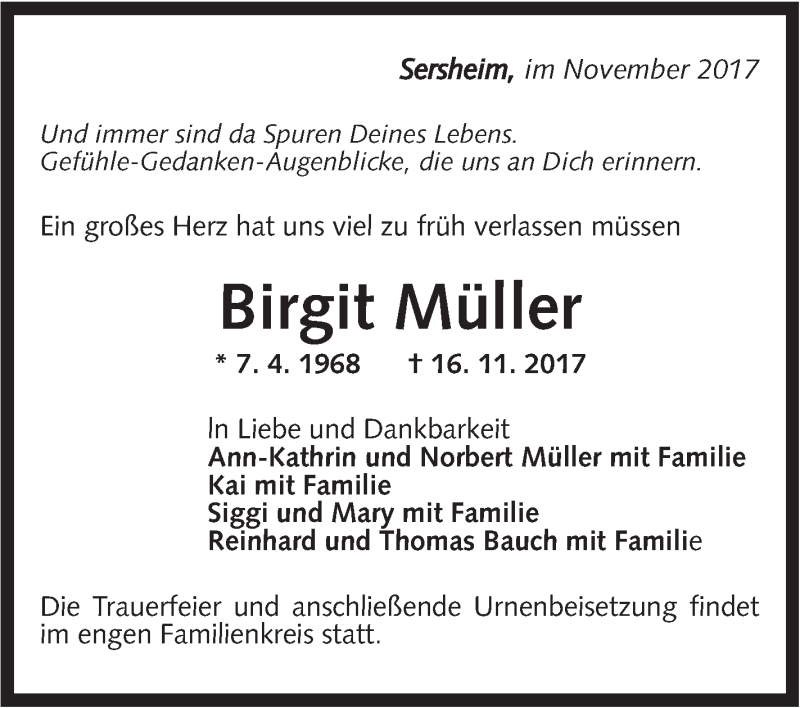 Hier finden Sie alle Traueranzeigen aus der Zeitung, die bisher für Birgit Müller erschienen sind. Weitere Traueranzeigen, die in der Zeitung erscheinen, werden hier ebenfalls aufgelistet