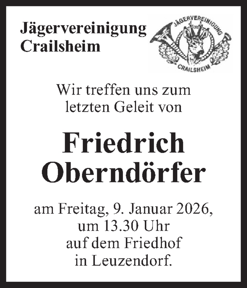 Hier finden Sie alle Traueranzeigen aus der Zeitung, die bisher für Friedrich Oberndörfer erschienen sind. Weitere Traueranzeigen, die in der Zeitung erscheinen, werden hier ebenfalls aufgelistet