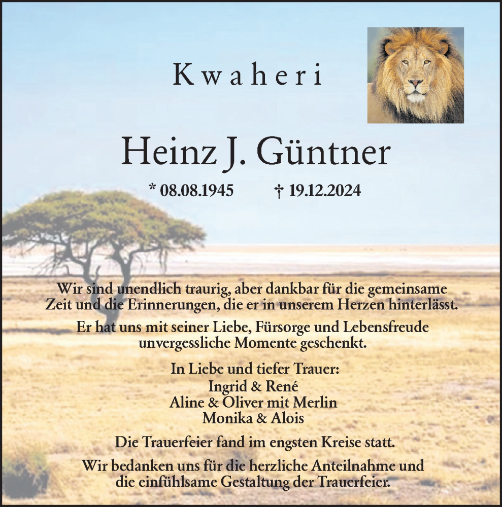 Hier finden Sie alle Traueranzeigen aus der Zeitung, die bisher für Heinz Güntner erschienen sind. Weitere Traueranzeigen, die in der Zeitung erscheinen, werden hier ebenfalls aufgelistet