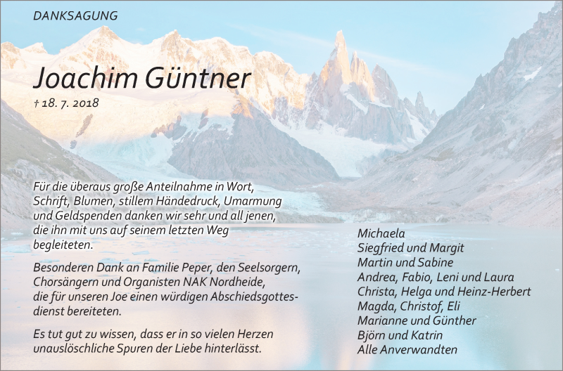 Hier finden Sie alle Traueranzeigen aus der Zeitung, die bisher für Joachim Güntner erschienen sind. Weitere Traueranzeigen, die in der Zeitung erscheinen, werden hier ebenfalls aufgelistet
