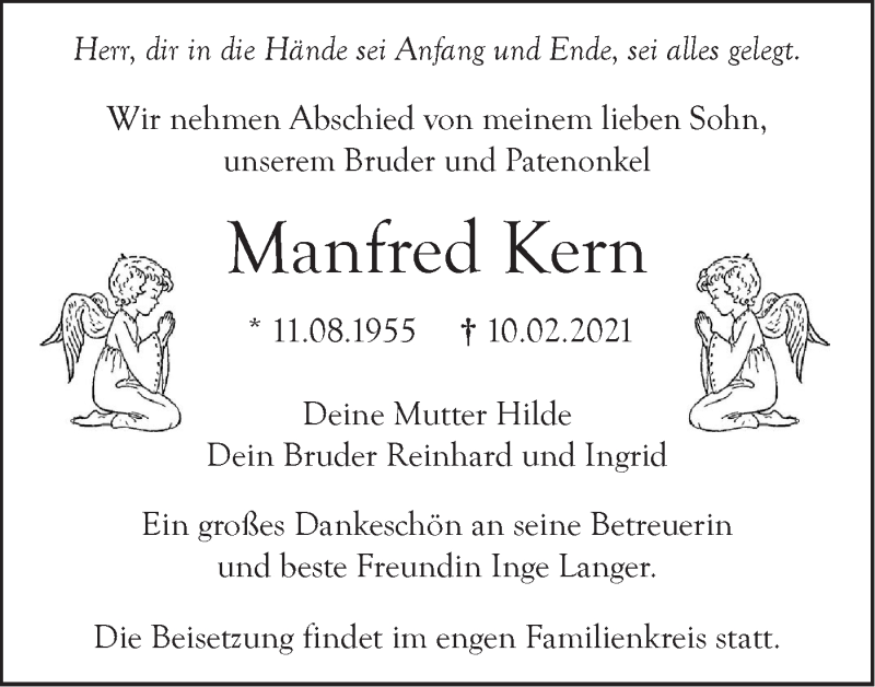 Hier finden Sie alle Traueranzeigen aus der Zeitung, die bisher für Manfred Kern erschienen sind. Weitere Traueranzeigen, die in der Zeitung erscheinen, werden hier ebenfalls aufgelistet