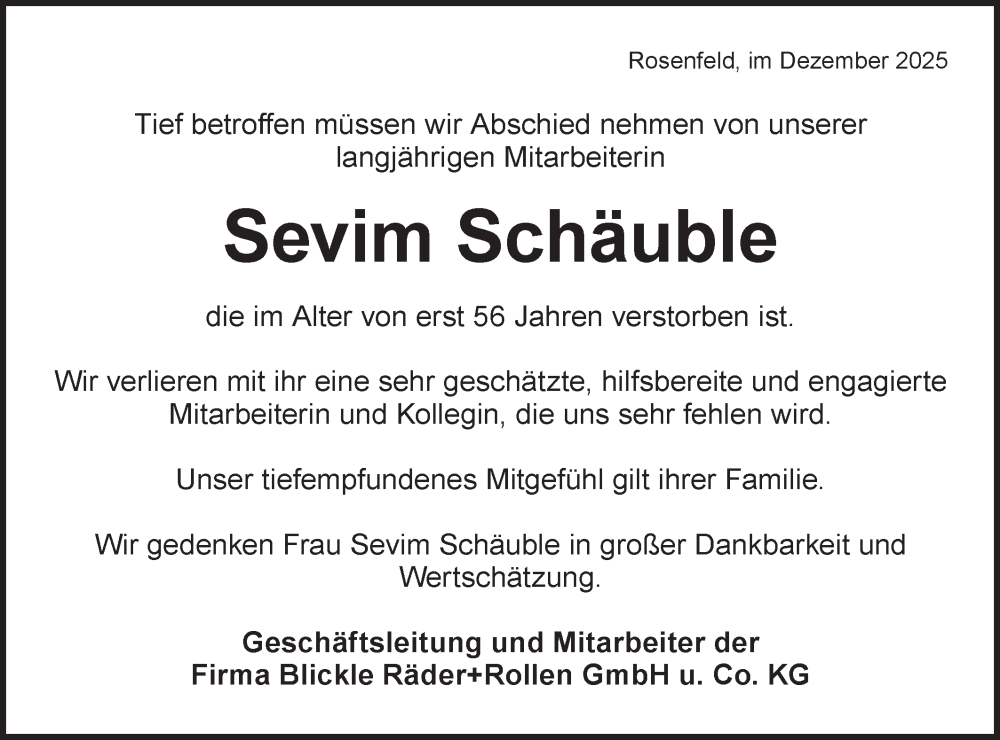 Hier finden Sie alle Traueranzeigen aus der Zeitung, die bisher für Sevim Schäuble erschienen sind. Weitere Traueranzeigen, die in der Zeitung erscheinen, werden hier ebenfalls aufgelistet