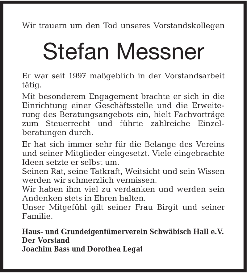 Hier finden Sie alle Traueranzeigen aus der Zeitung, die bisher für Stefan Messner erschienen sind. Weitere Traueranzeigen, die in der Zeitung erscheinen, werden hier ebenfalls aufgelistet