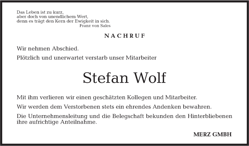 Hier finden Sie alle Traueranzeigen aus der Zeitung, die bisher für Stefan Wolf erschienen sind. Weitere Traueranzeigen, die in der Zeitung erscheinen, werden hier ebenfalls aufgelistet