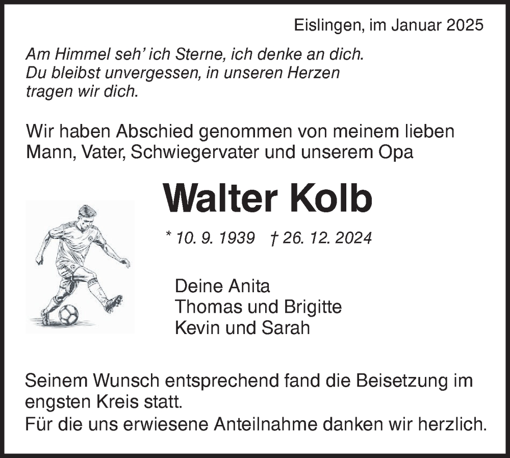 Hier finden Sie alle Traueranzeigen aus der Zeitung, die bisher für Walter Kolb erschienen sind. Weitere Traueranzeigen, die in der Zeitung erscheinen, werden hier ebenfalls aufgelistet